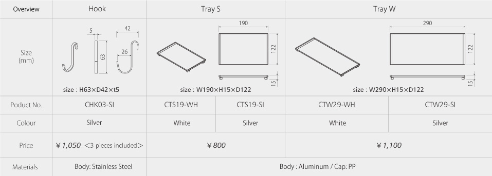 The magnetic kitchen storage series “Cucurie” is designed for use with the “Cucurie Board”, a steel-containing wall panel that allows magnets to attach. This series lets you easily expand kitchen storage. Unlike items fixed to the wall, the magnetic system lets you choose and customize storage items to your liking. You can adjust the layout anytime to suit your needs, preferences, or height.