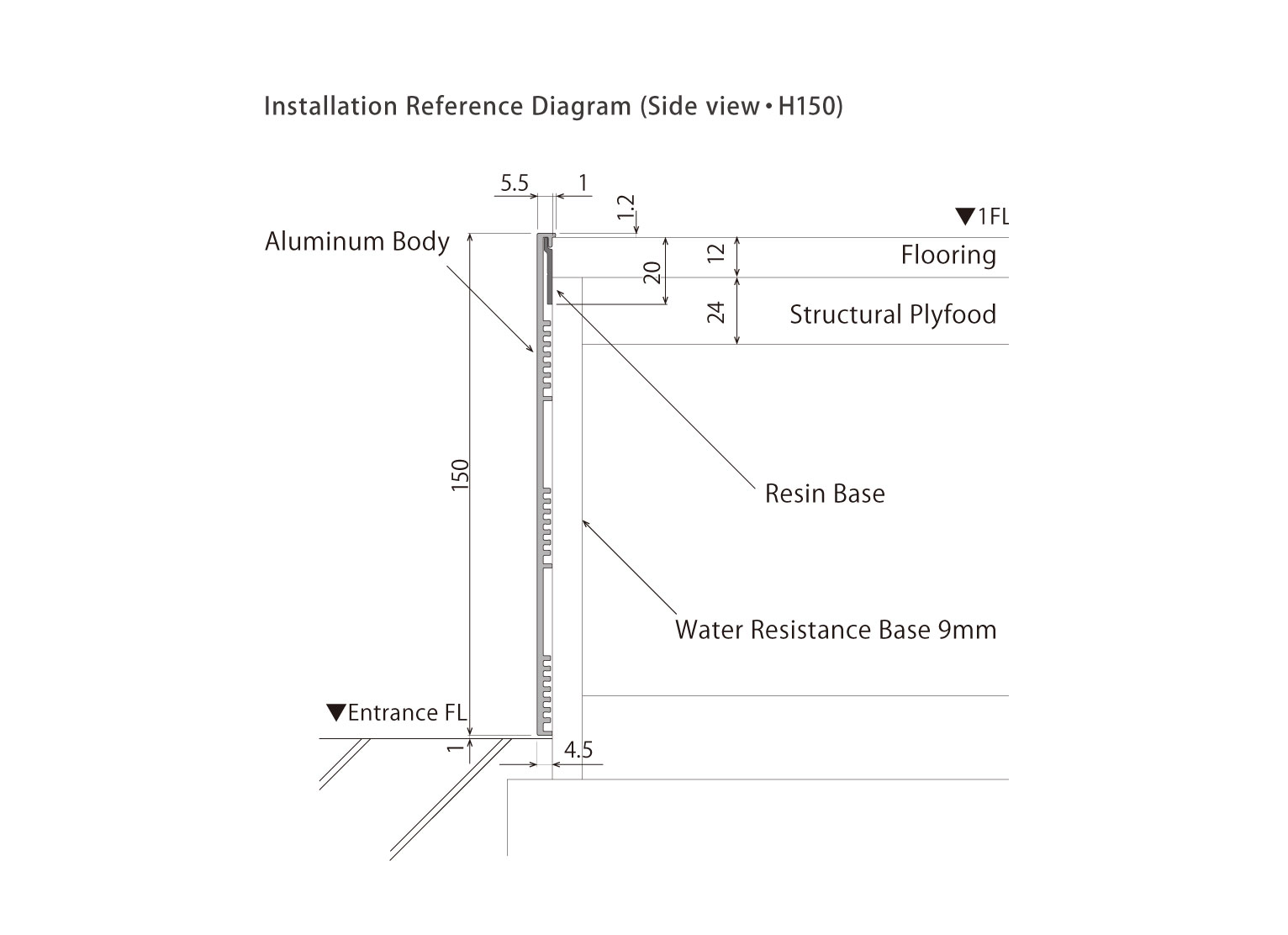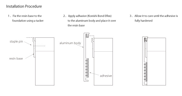 Also, before attaching the aluminum cover, make sure that the resin base is not lifting from the tiles and is installed straight without any waviness.