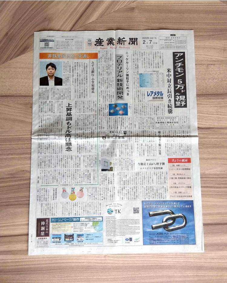 HOME ニュース 「産業新聞」「鉄鋼新聞」に掲載 「産業新聞」「鉄鋼新聞」に掲載 2025/02/21ニュース 「産業新聞」「鉄鋼新聞」に、マルチフレーム「SCUA」を掲載いただきました。 前の記事を見る一覧へ戻る次の記事を見る
