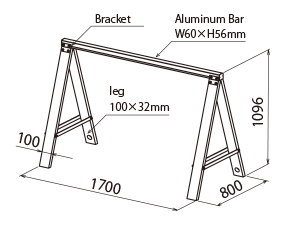 Aluminum Bar:Aluminum; legs:Recycled Resin(PP・PE) / Bracket:Stainless(painted)/Bolt・Nut・Cap Nut:Stainless |