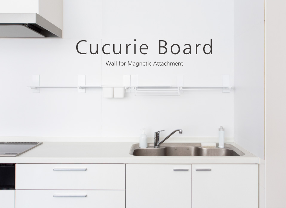 The magnetic kitchen storage series “Cucurie” is designed for use with the “Cucurie Board”, a steel-containing wall panel that allows magnets to attach. This series lets you easily expand kitchen storage. Unlike items fixed to the wall, the magnetic system lets you choose and customize storage items to your liking. You can adjust the layout anytime to suit your needs, preferences, or height.