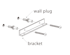 2.Put wall plugs into wall and fix a bracket with truss screws.