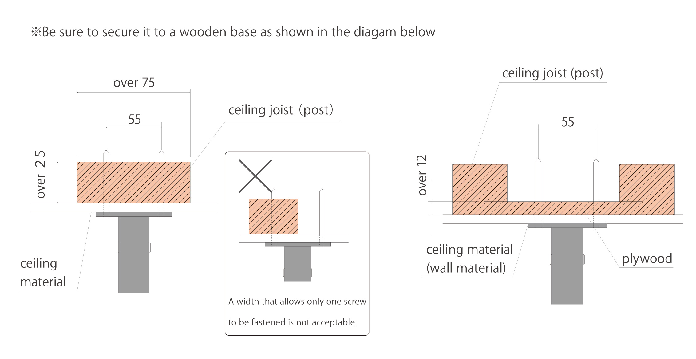 kacu uses 25 mm square pipes for the frame. Furthermore, the joints between frames and the wall-mounted brackets have a simple design with minimal irregularities, so it blends in with any room.