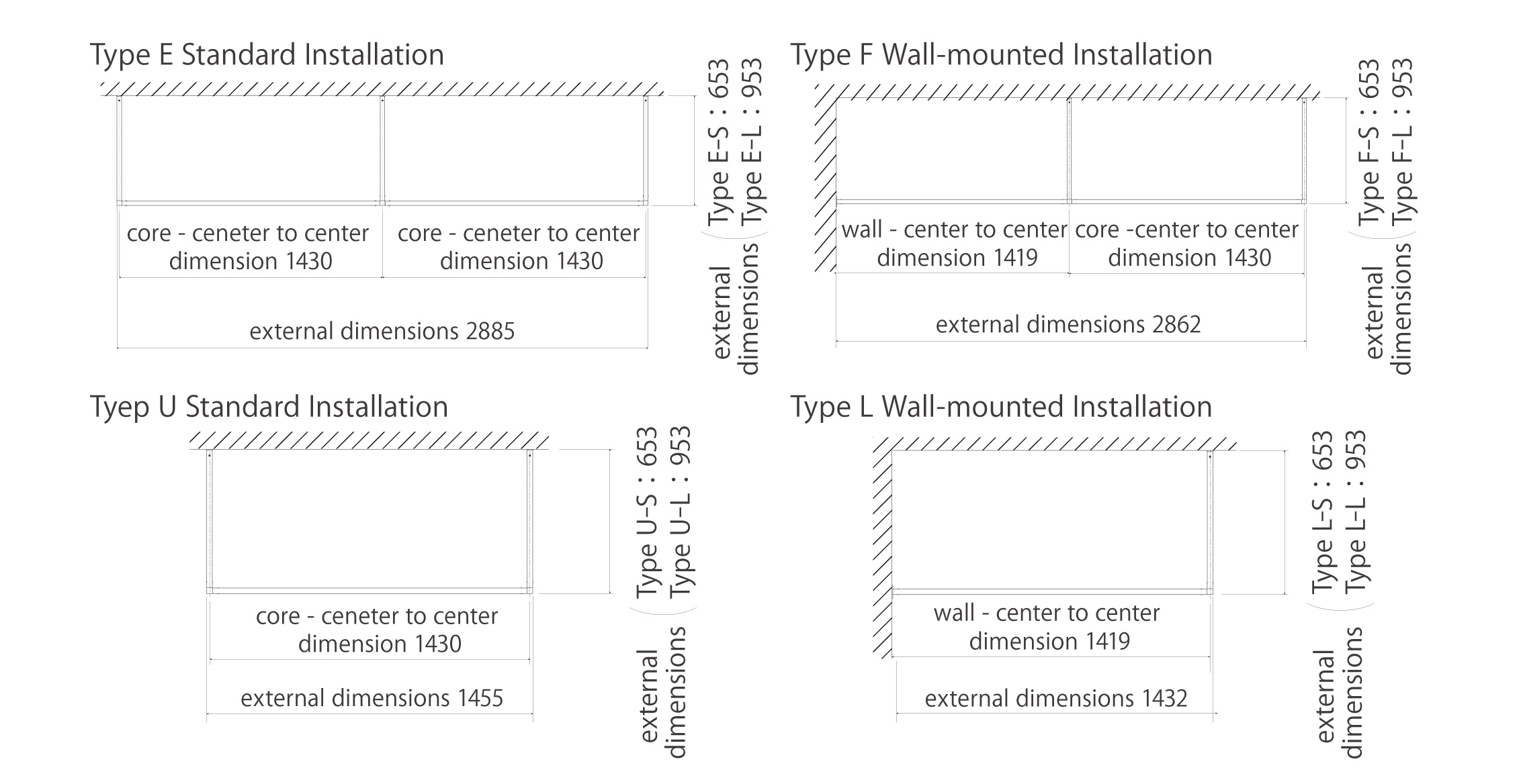 The brackets can be mounted not only on the ceiling but also on the wall, so that the U-shaped set can be installed in an L-shape.