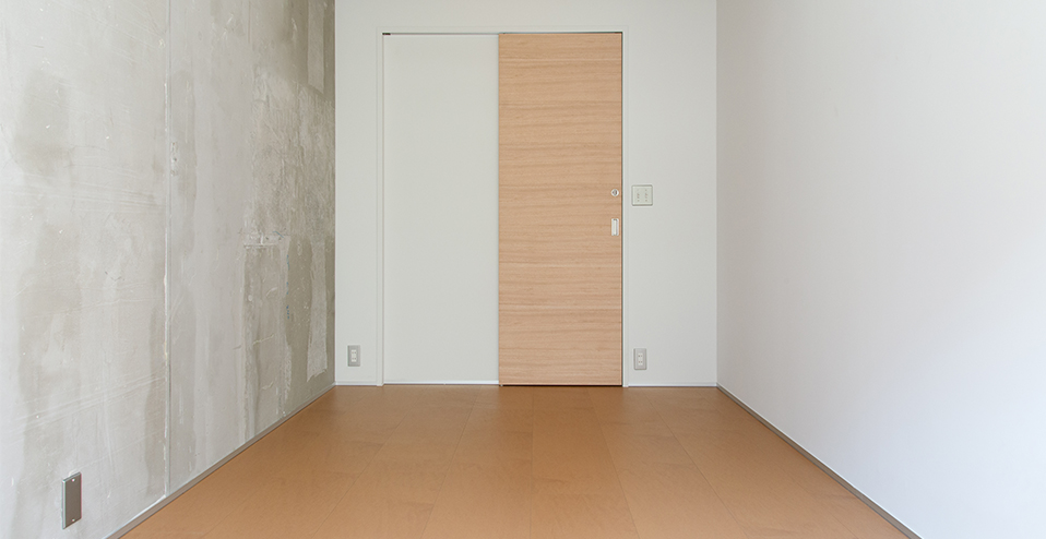 【シンプル】アッサムティーのような透明感とメープルが持つあっさり感。目地の少なさとマッチし今までにない広がりのあるシンプルな空間に。