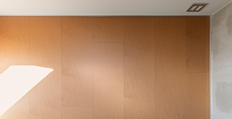 フローリングは大きく分けると「無垢」と「複合」に分類されます。「無垢」は、一枚板で構成されたものです。「複合」は言葉通り、断面が複数の材料を合わせて作られたものです。「無垢」は、見た目や質感共に最も良いですが、断面も天然の一枚板のため収縮による隙間、突き上げ、反り等が発生しやすいデメリットを持ちます。「複合」は、表面に薄くスライスした天然木を貼り、見た目や質感は無垢のまま、無垢の持つデメリットを解消するために、特殊シートと乾燥された合板を組み合わせて作られたものです。そうすることで、床暖房にも対応できるようになります。WOLDは後者の「複合」フローリングを採用しました。※木質材の為、調湿による隙間、突き上げが全くなくなるわけではありません。