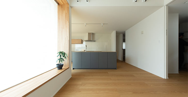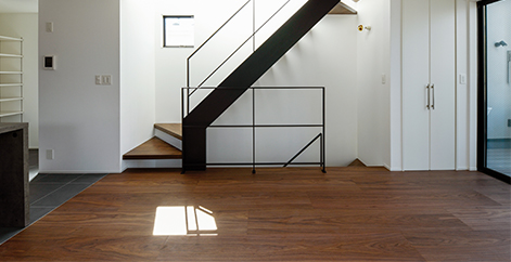 一枚板のように幅を広くすることで空間に豊さを与えるフローリングです。