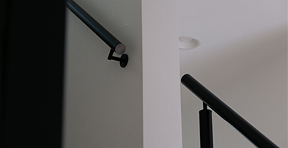 今まで展開のあったAluteは吹抜、階段用ともに支柱があるタイプのものでした。 お客様から多く要望があった壁付タイプ。 吹抜・階段用と意匠の文脈を合わせ、壁面に「丁寧な線」を描き出します。 これからは吹抜・階段手摺と壁付手摺が両方付いている現場でも 空間に統一感を出すことができます。