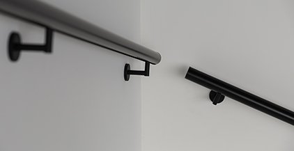 ブラケットが美しく納まるアルミ笠木に加え、Φ35mmの木丸棒(ブラック艶消し)もお選びいただけます。
