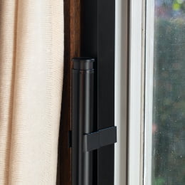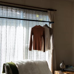窓枠に沿って取り付けると一段とすっきり収まります。カーテンの裏に取り付ければ支柱は見えません。さらに、竿を取り外して竿掛けに収納すれば、存在感が一切なくなります。