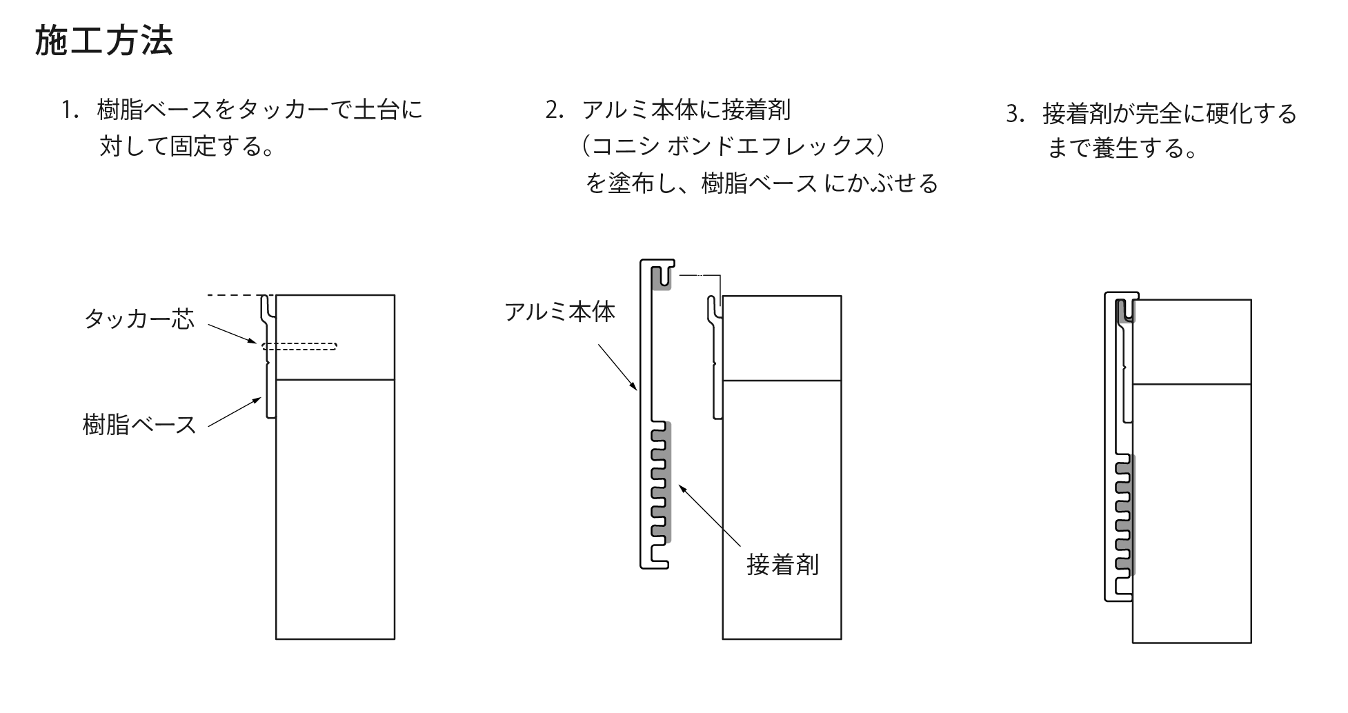 注)接着剤は、コニシ株式会社の「ボンド エフレックス」をご使用いただくようお願いいたします。